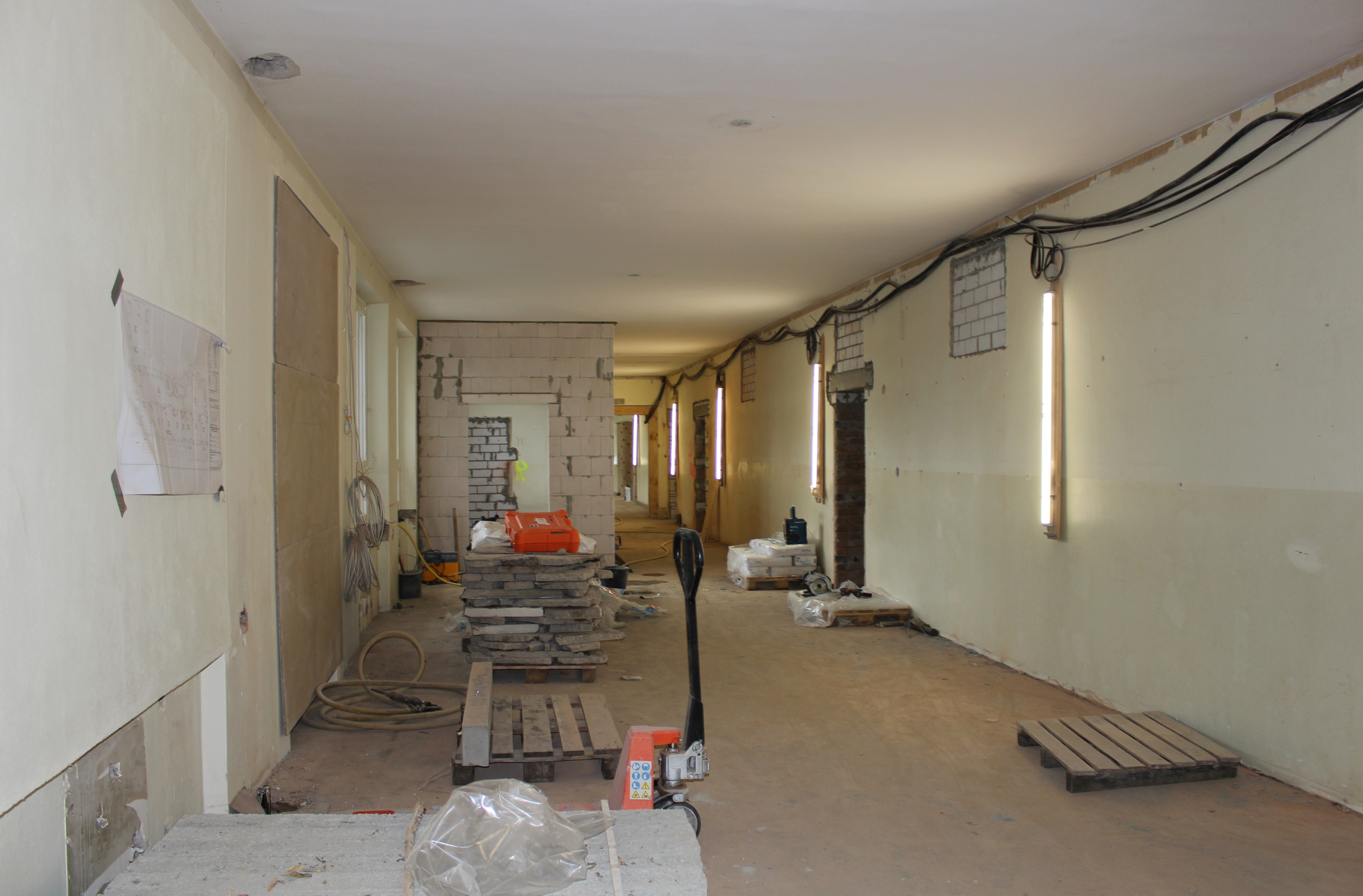 Ab jetzt beginnt auch das rege Bautreiben auf dem Schulhof. Wir konnten einen Einblick in die Arbeiten im Schulhaus gewinnen.