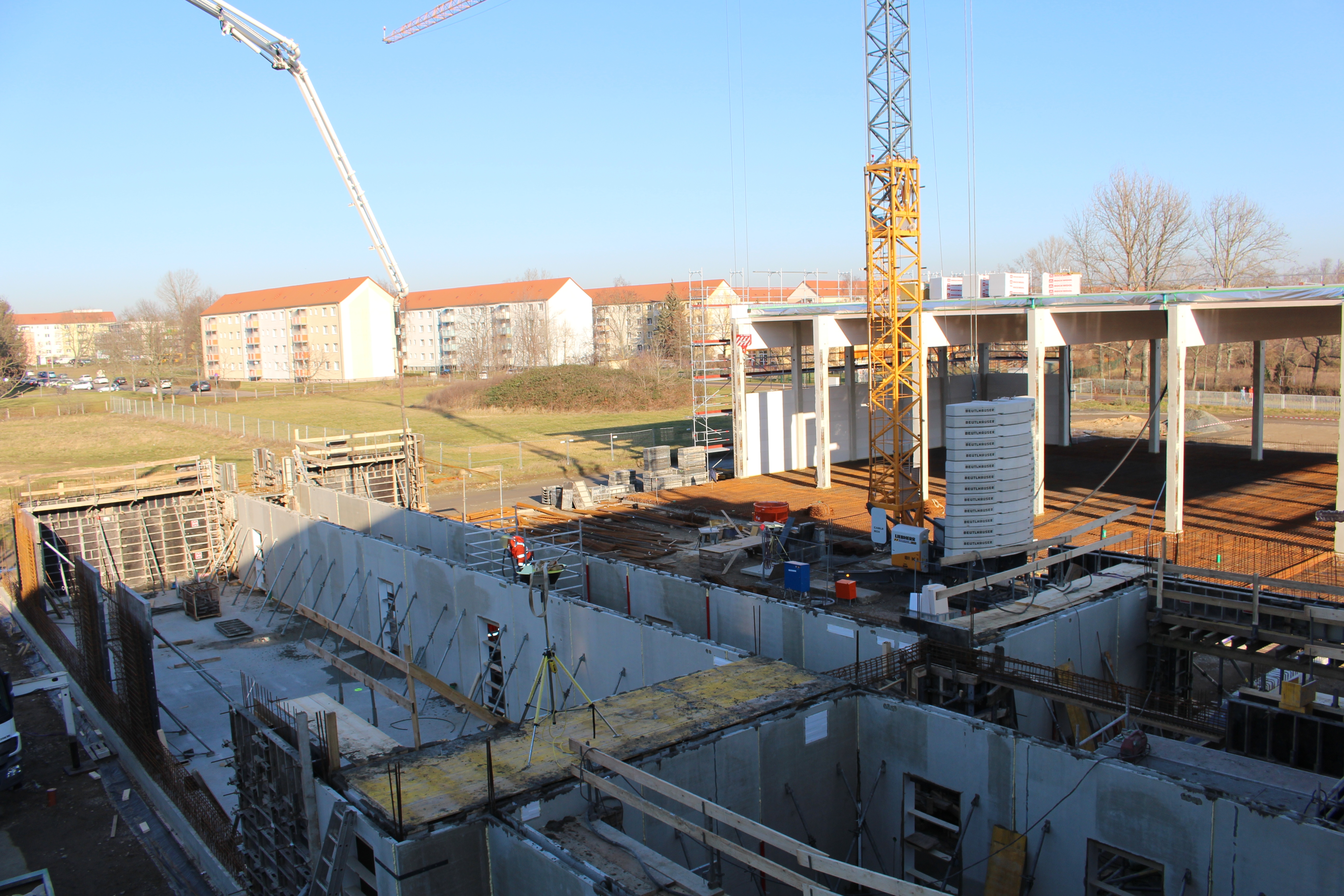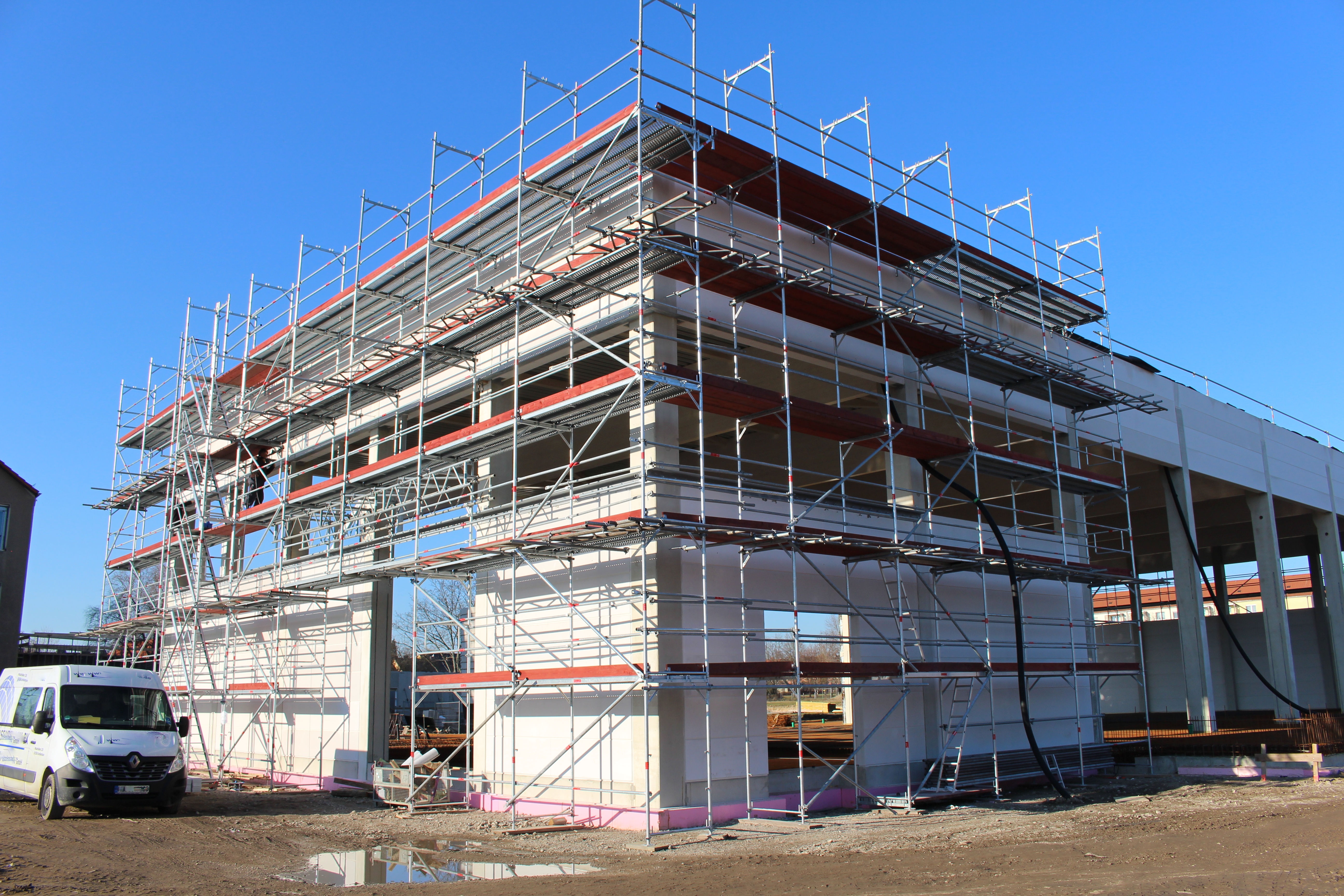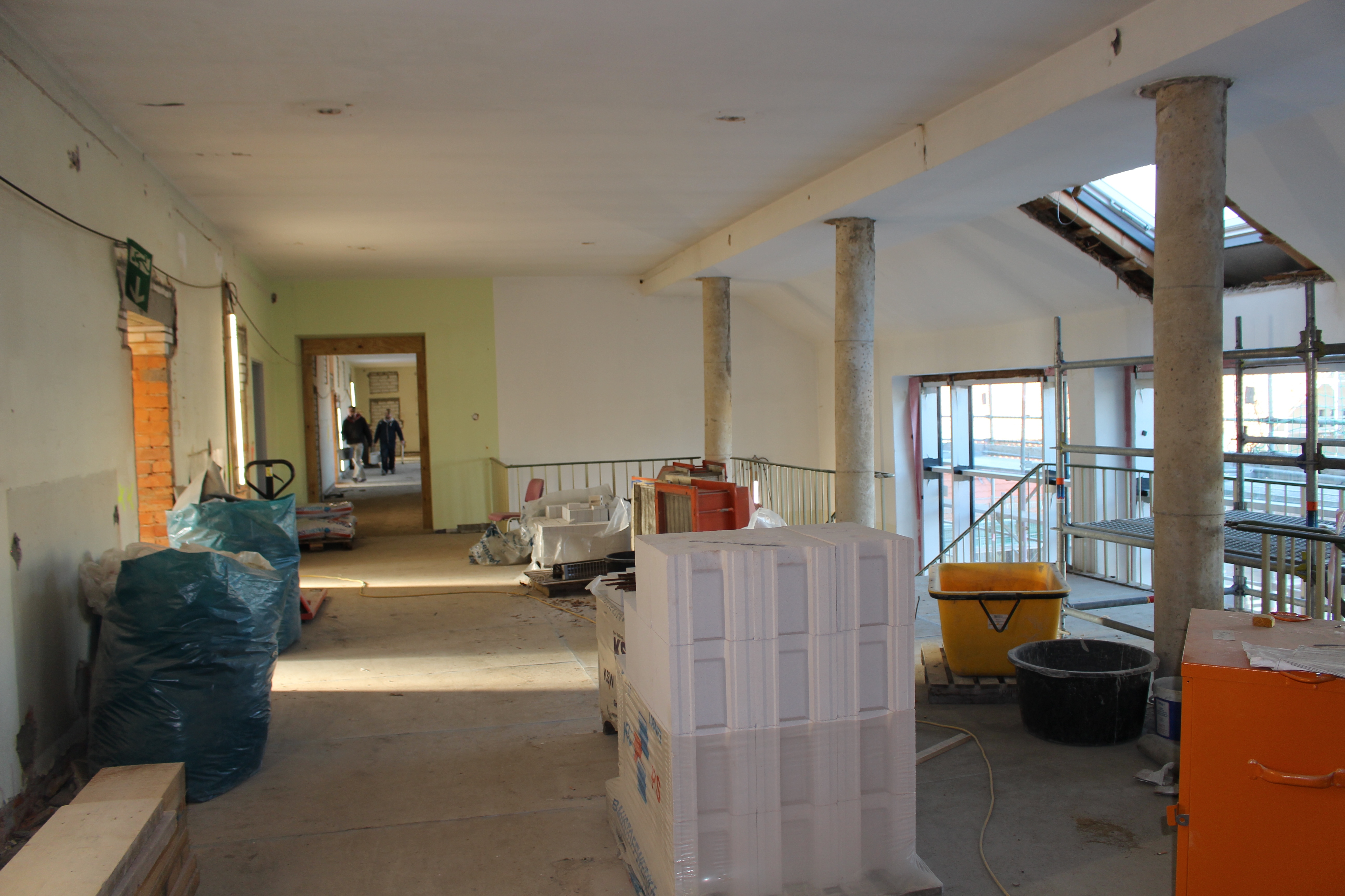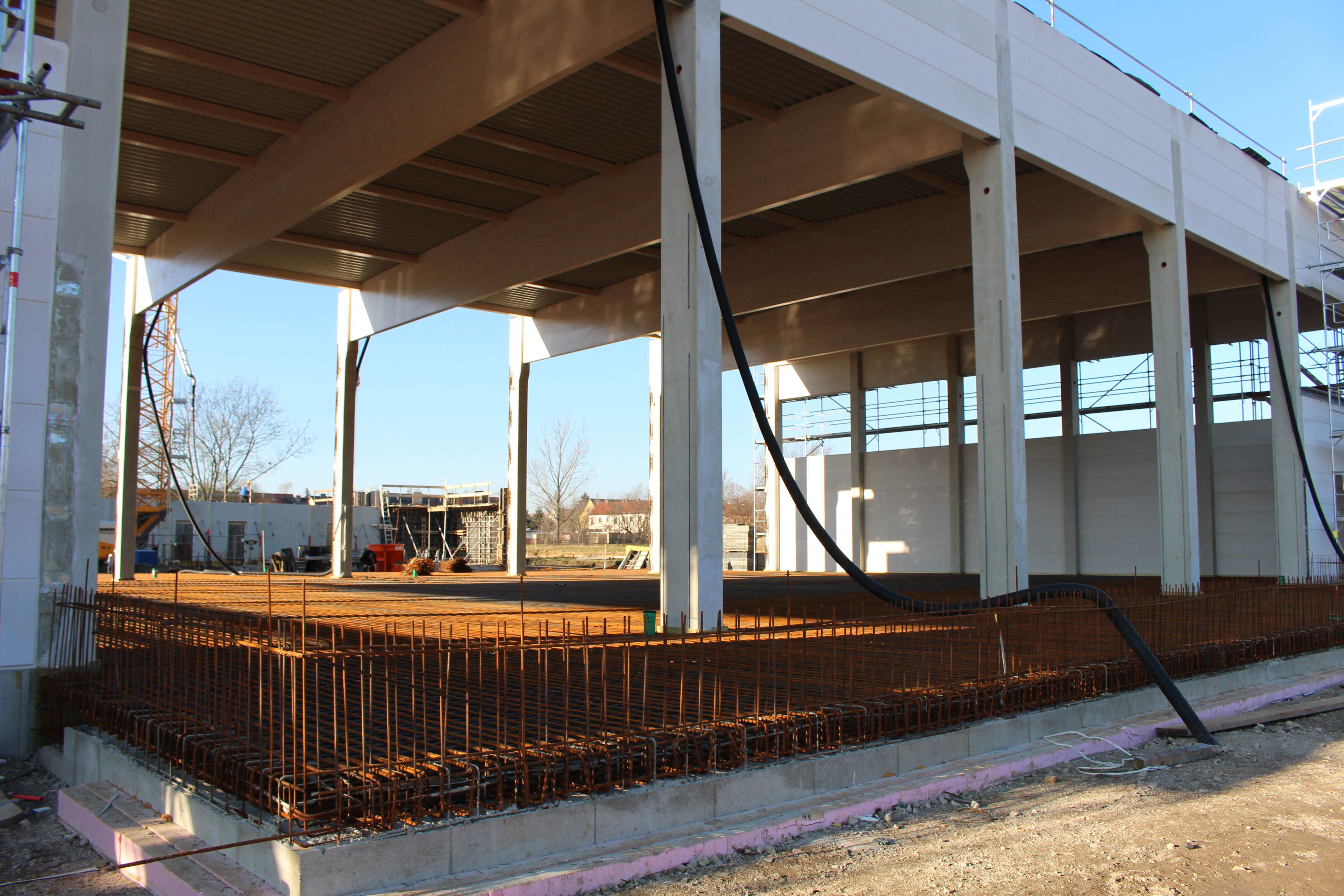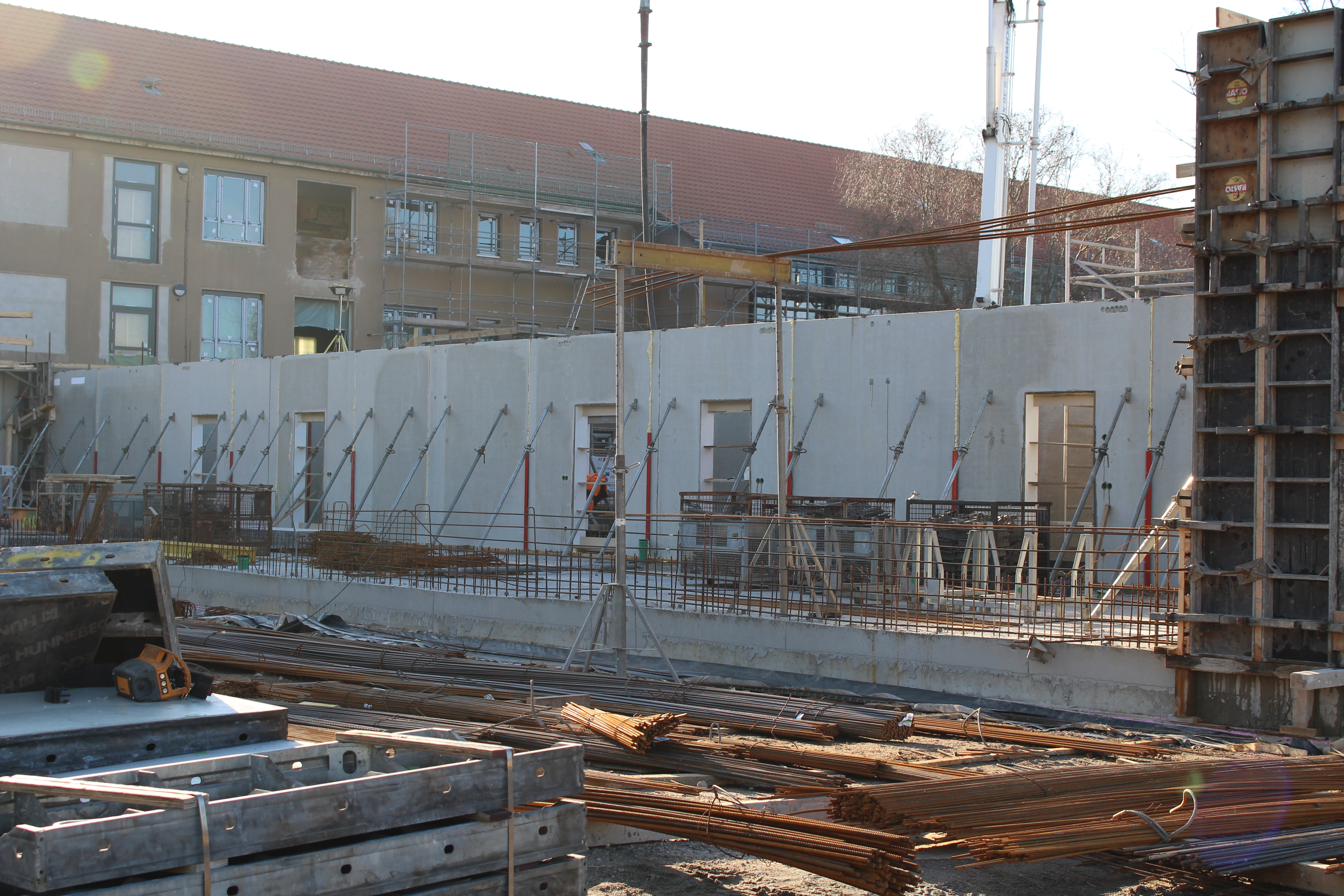 Im neuen Jahr ist nun auch schon die Hülle der neuen Turnhalle erkennbar. Auch im Schulhaus hat sich einiges getan...