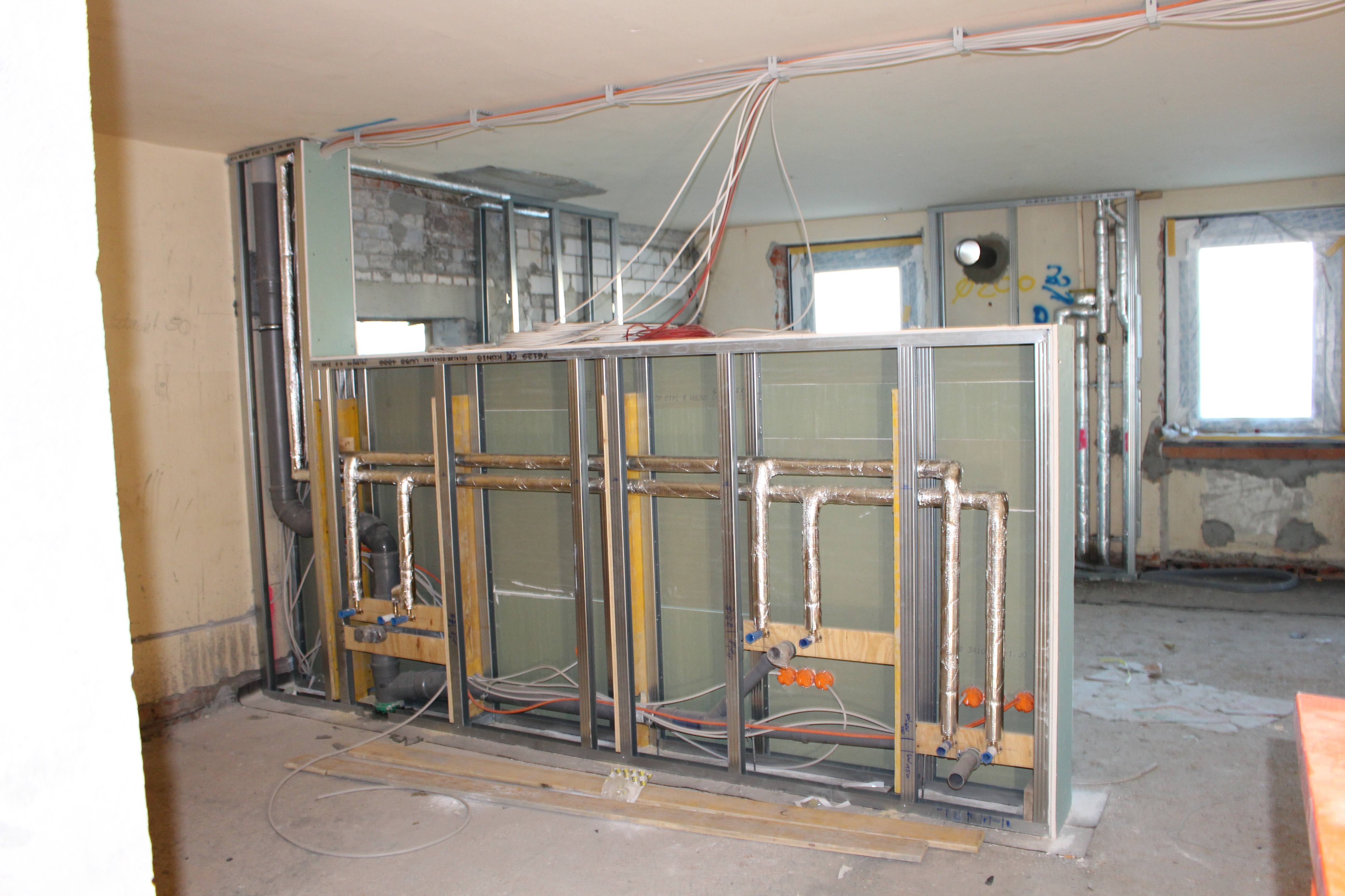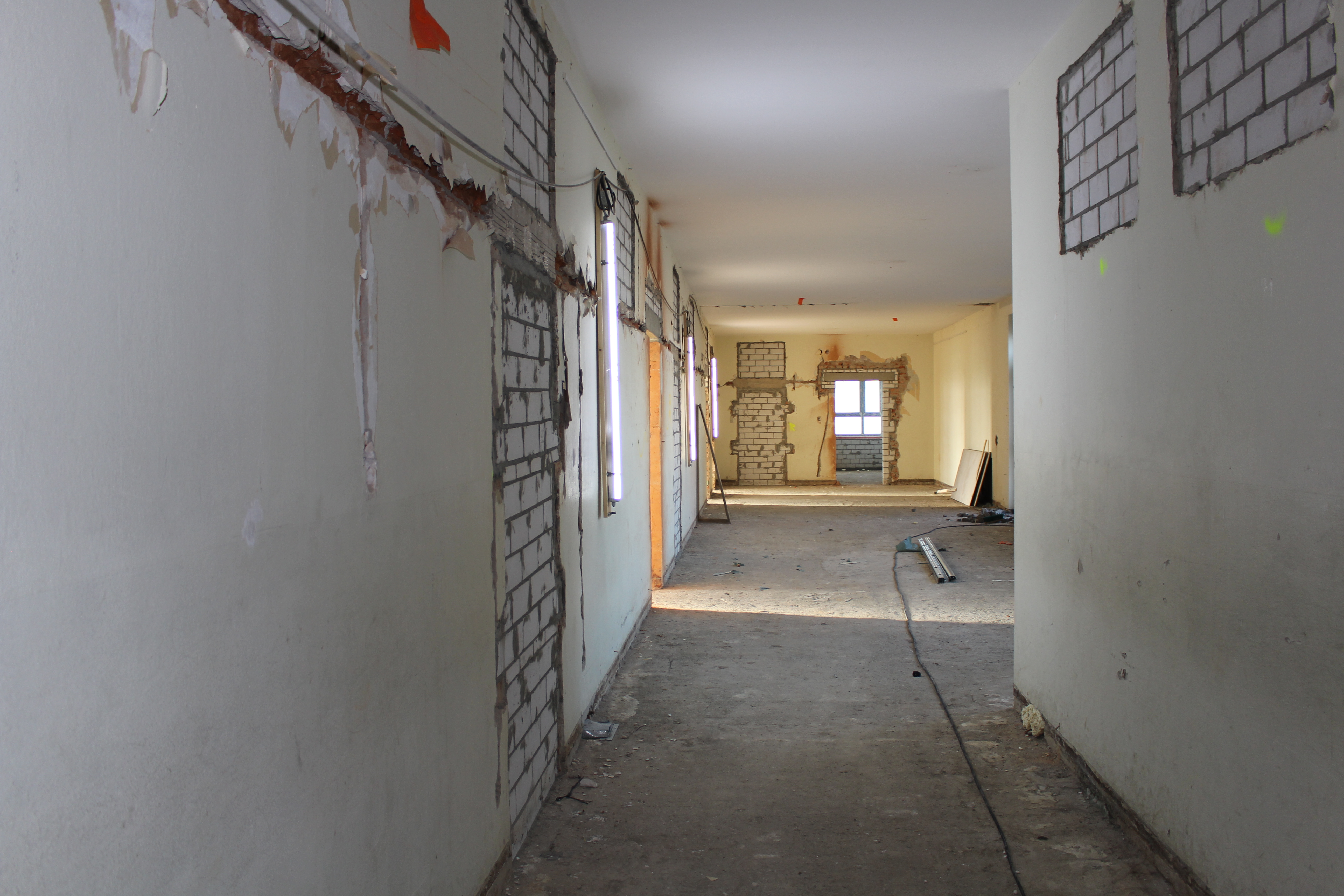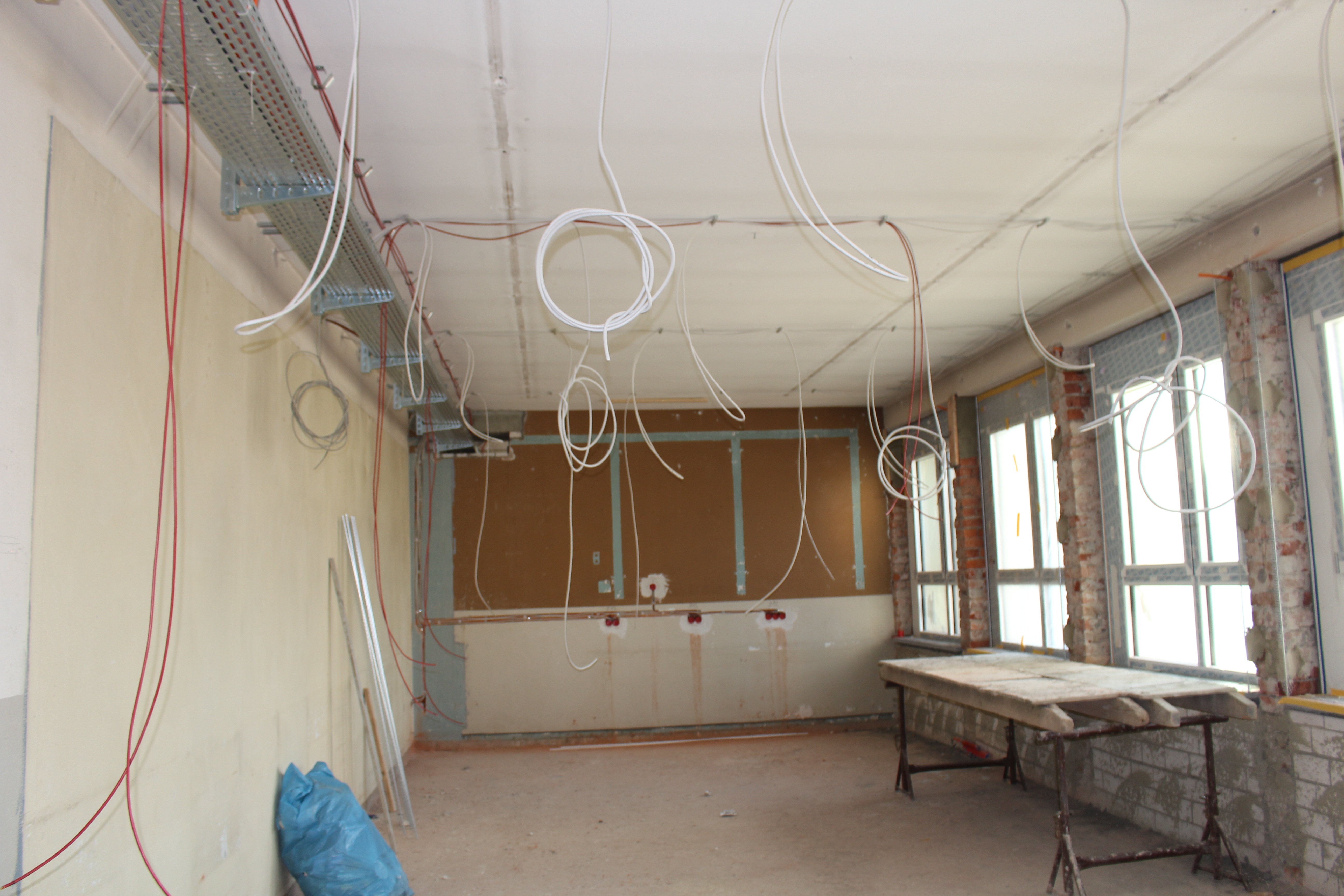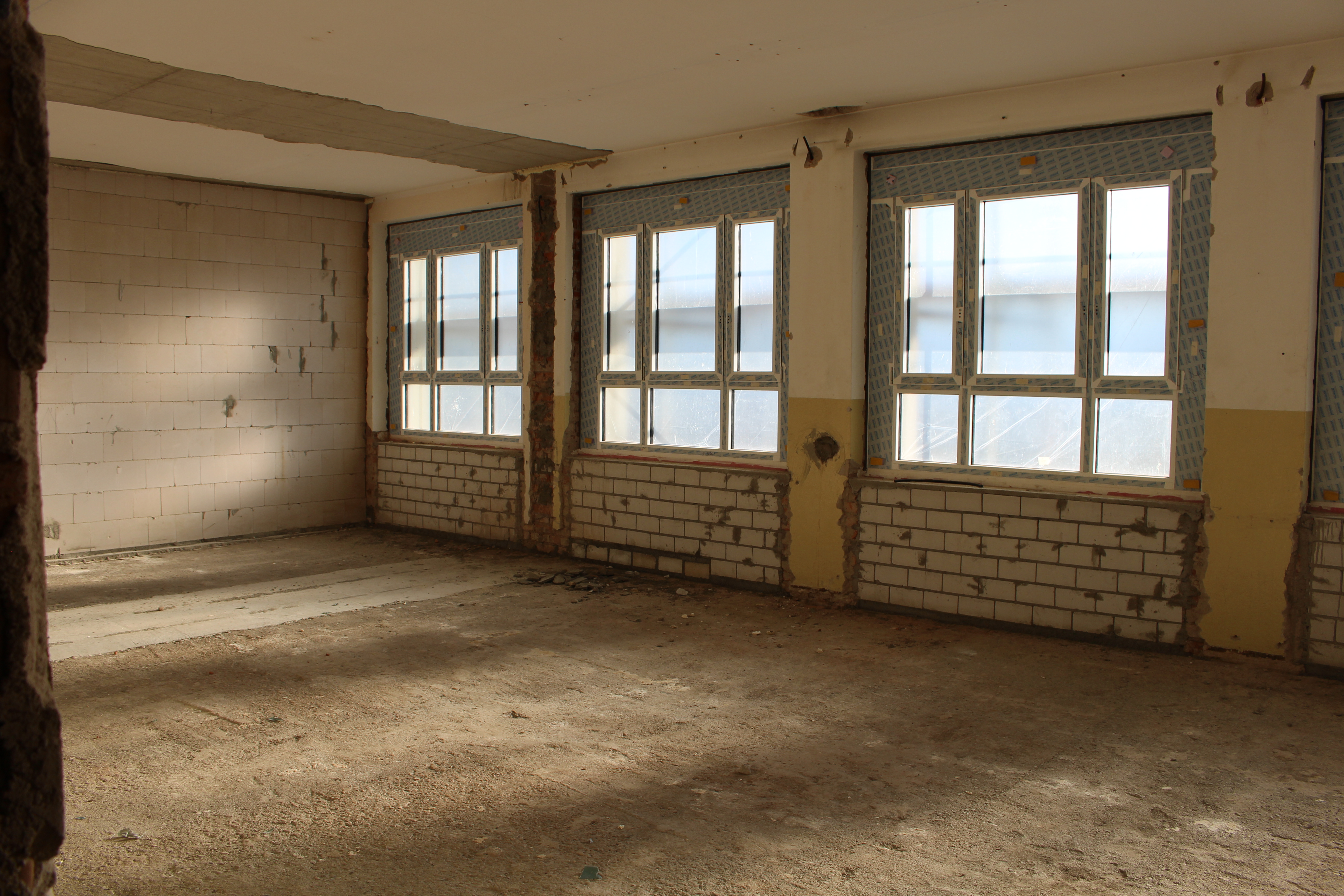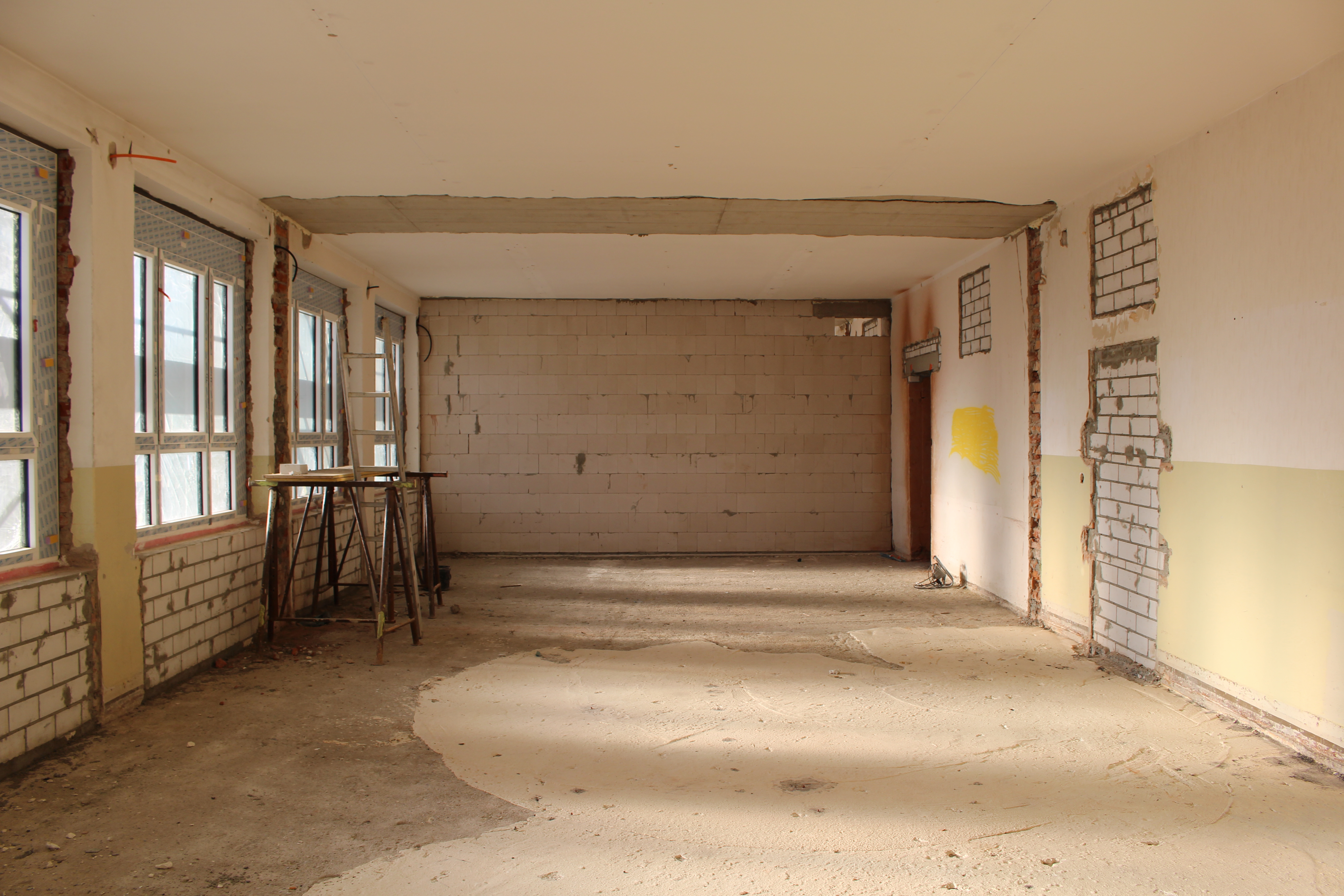 Im neuen Jahr ist nun auch schon die Hülle der neuen Turnhalle erkennbar. Auch im Schulhaus hat sich einiges getan...