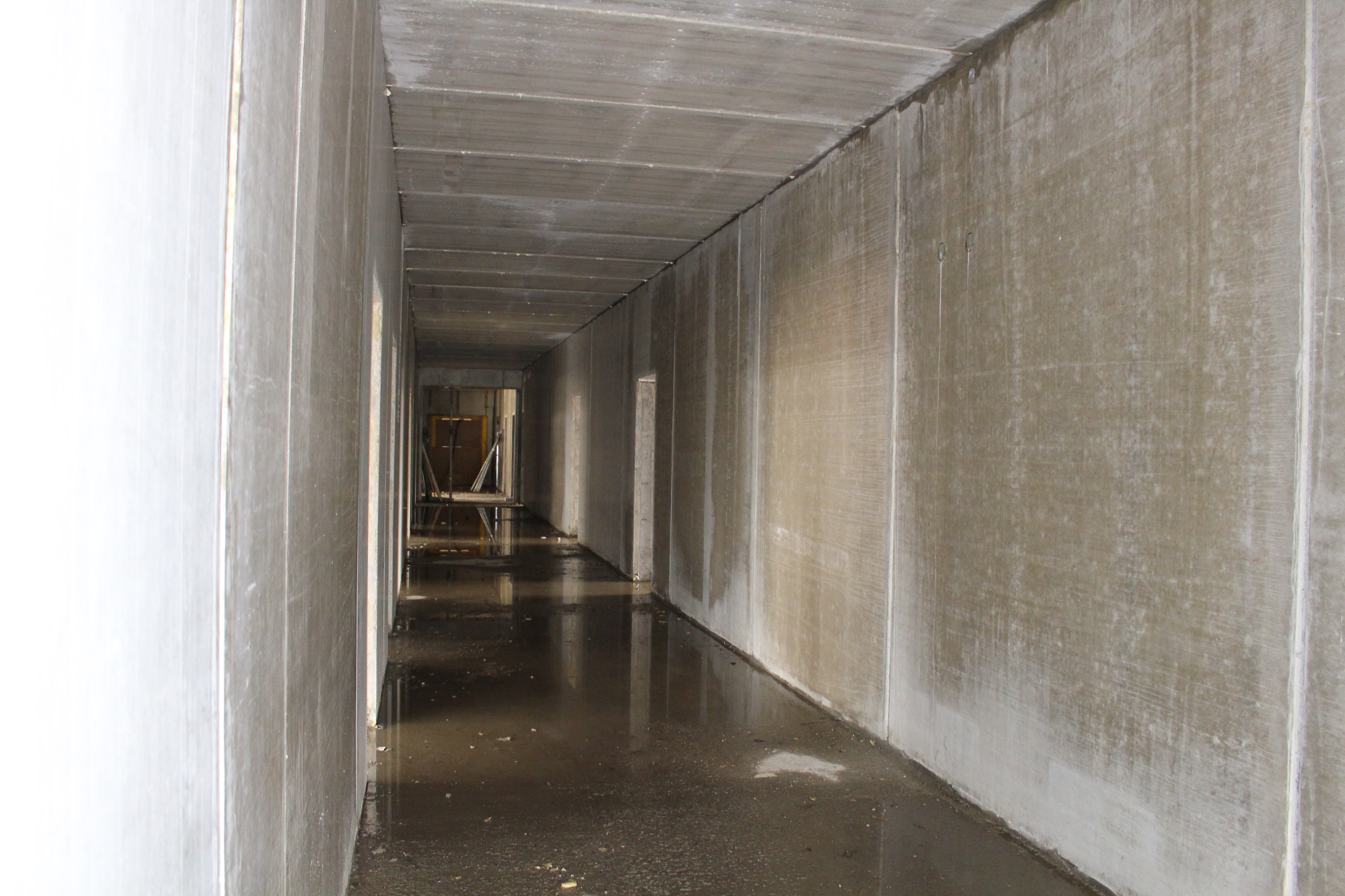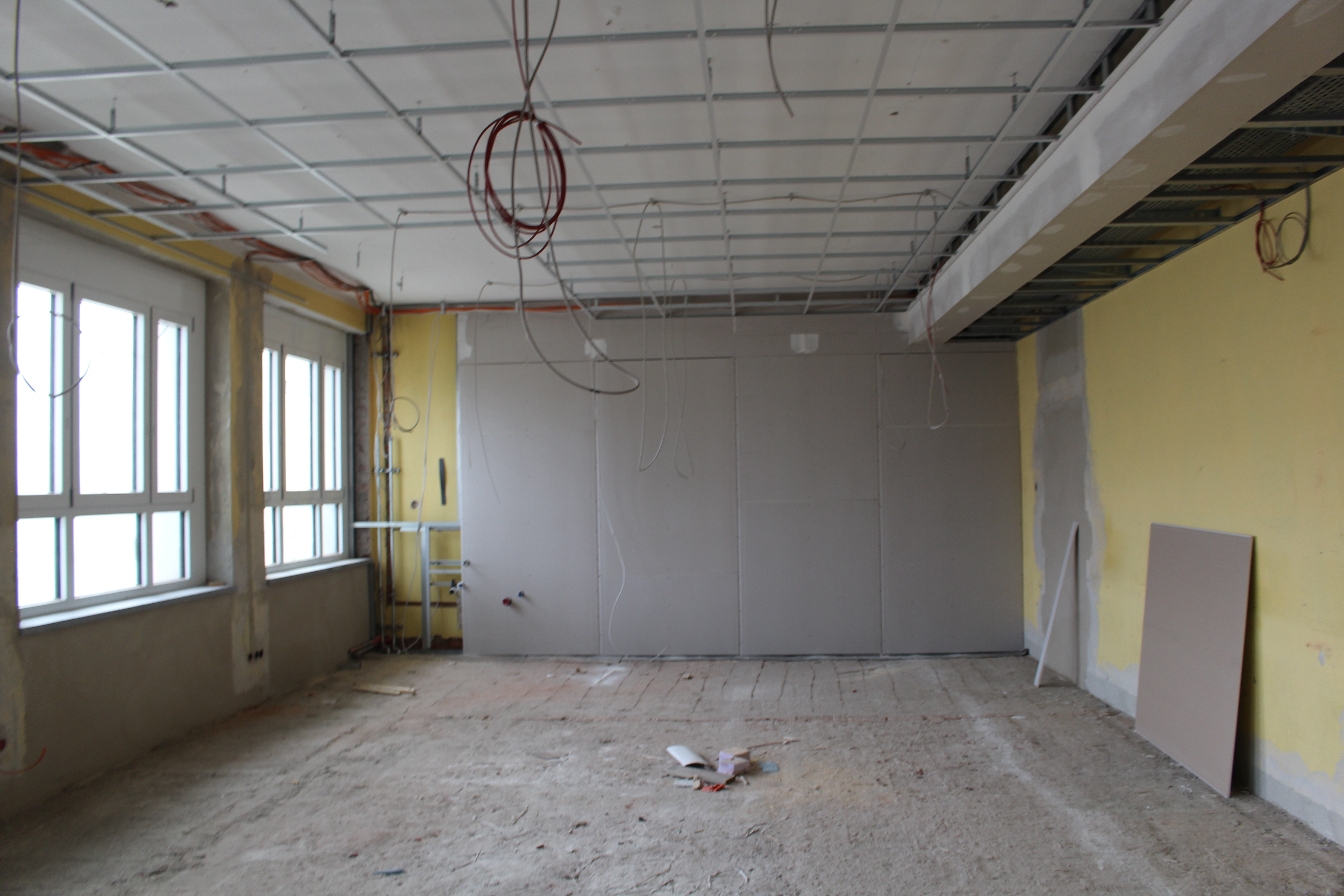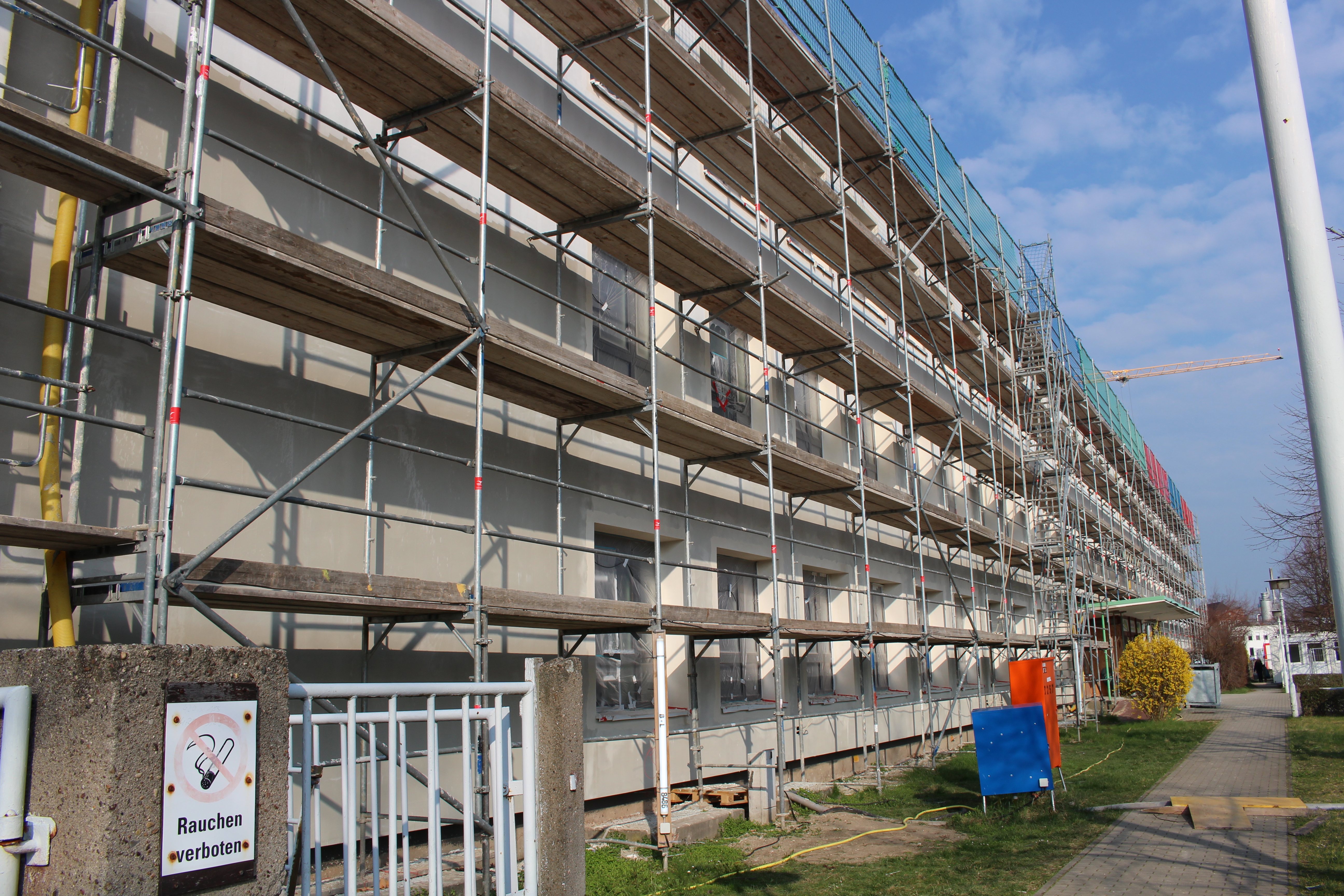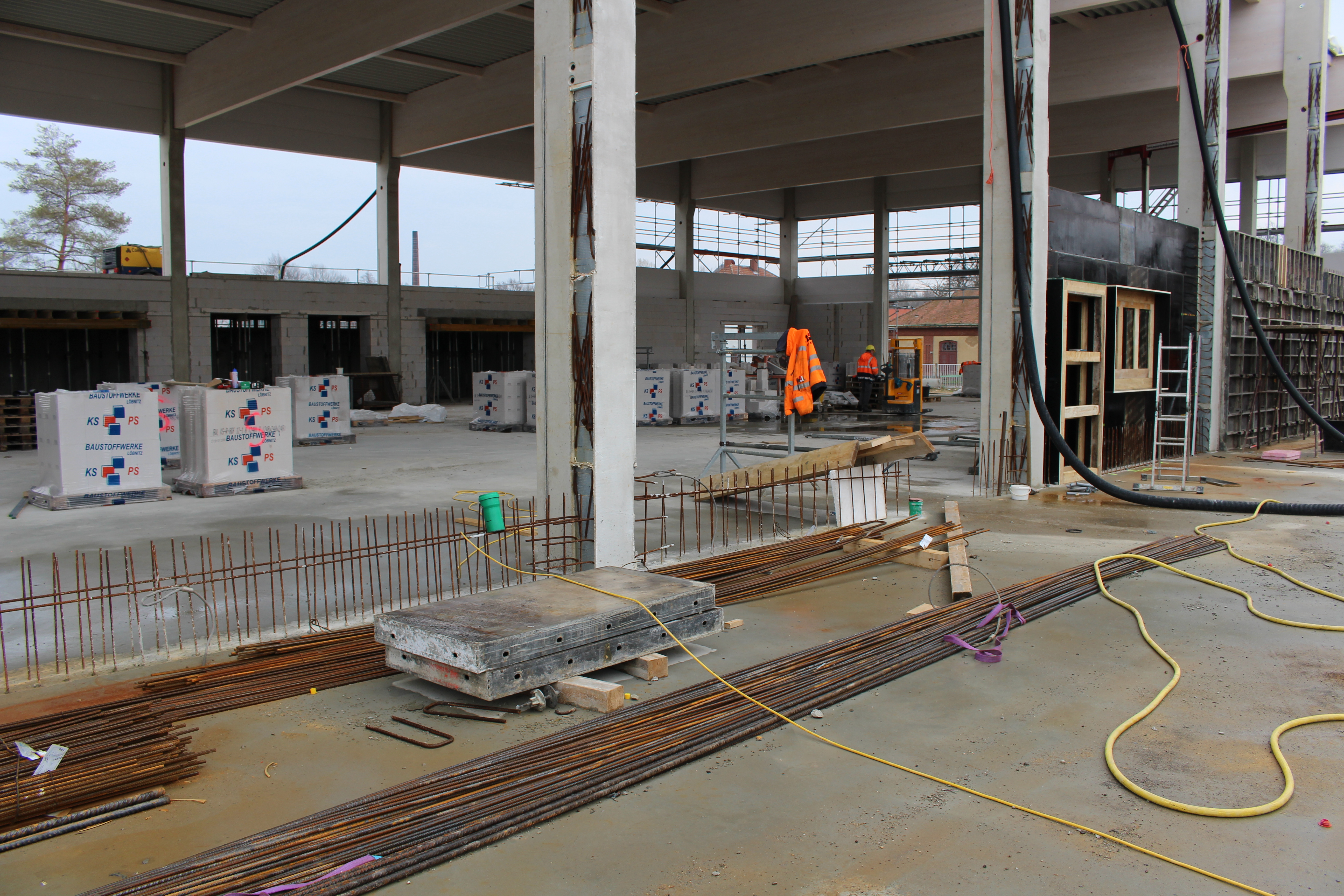 Die Turnhalle hat nun ein Dach bekommen. Auch das künftige Haus 3 wächst langsam in die Höhe.