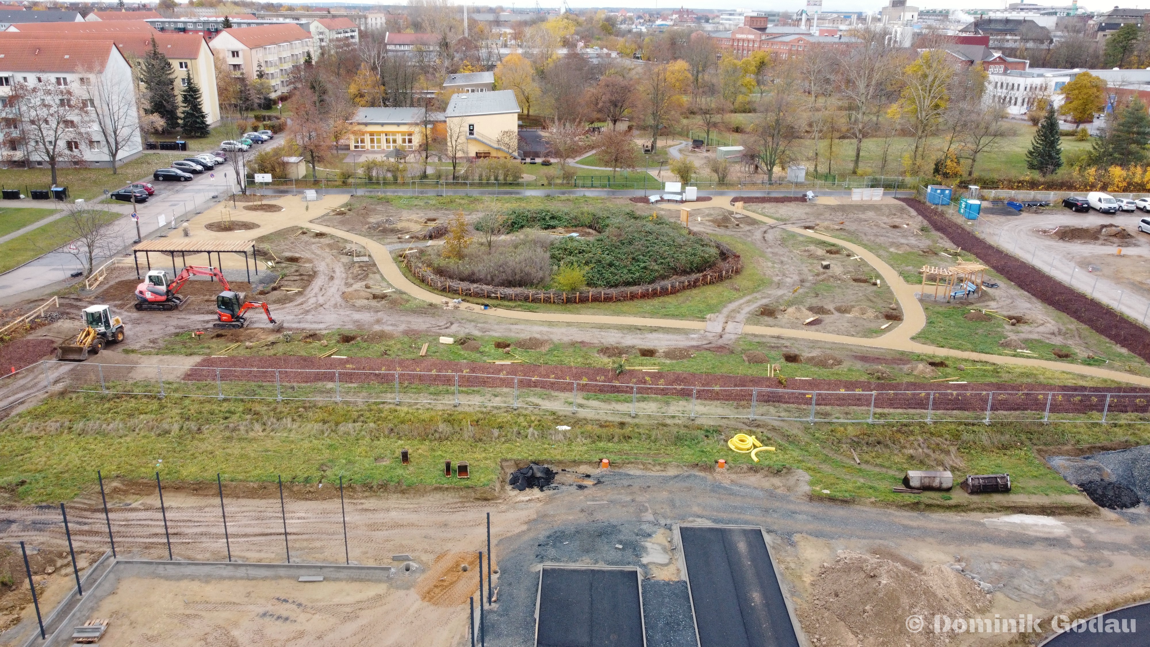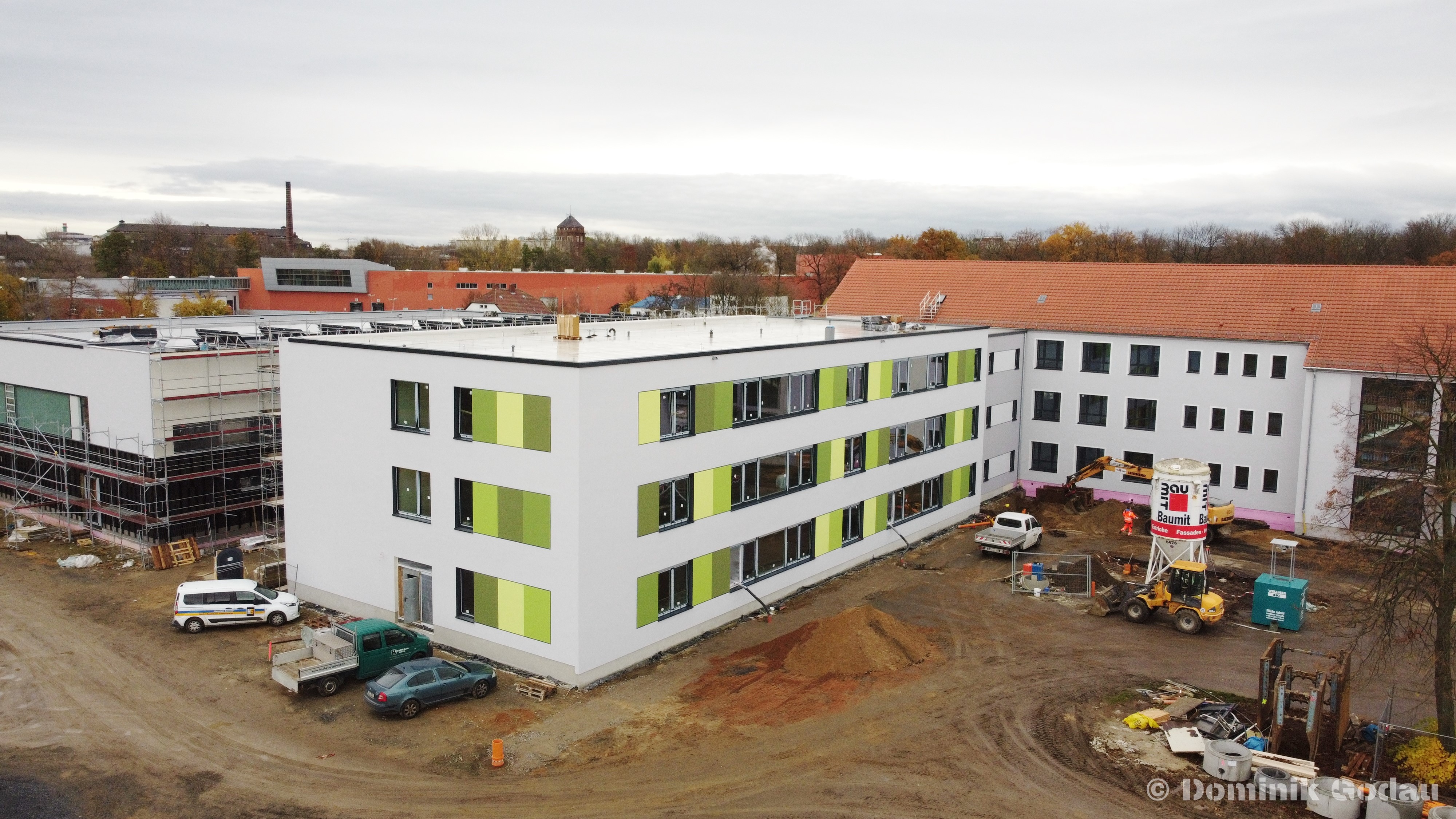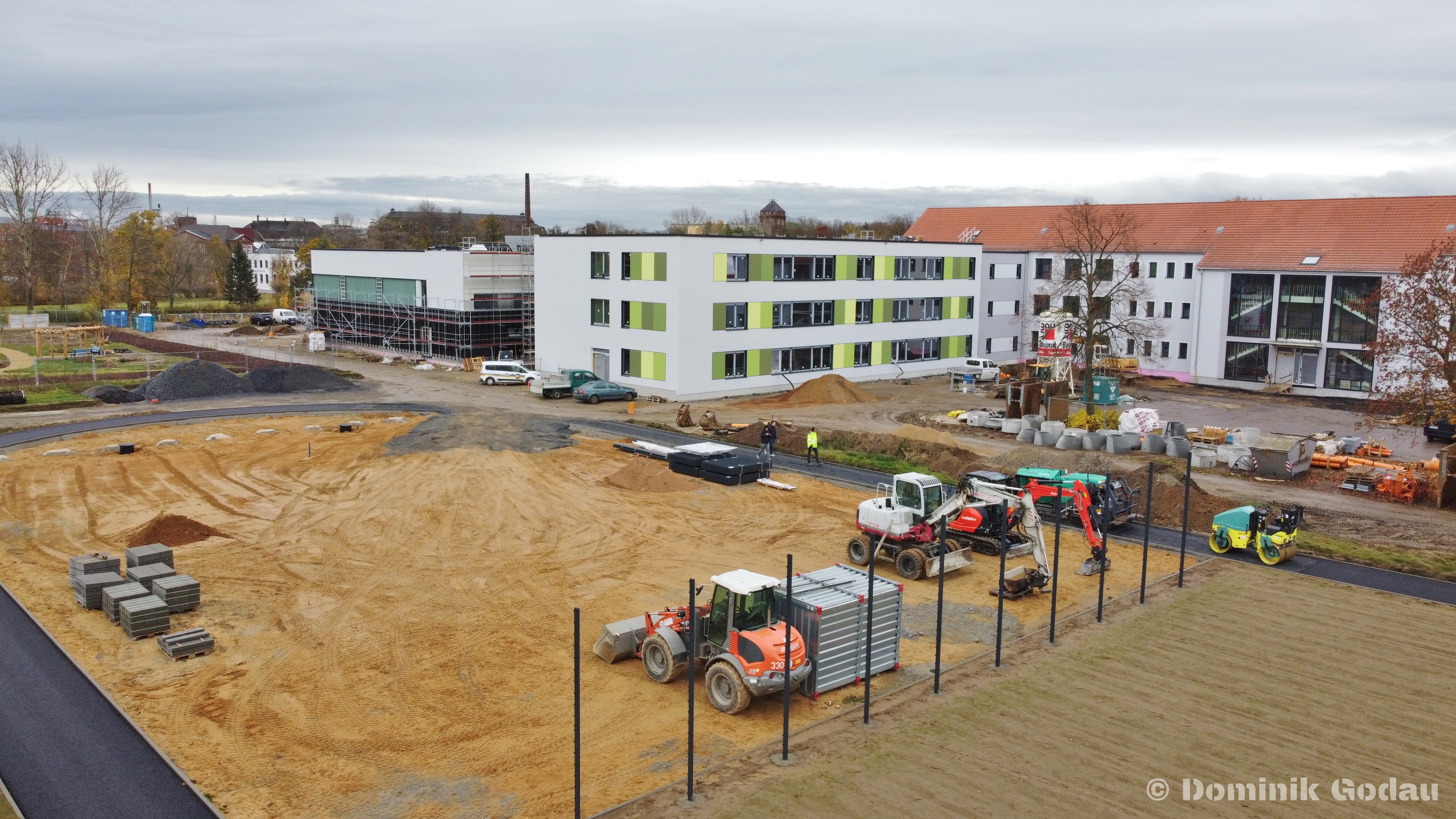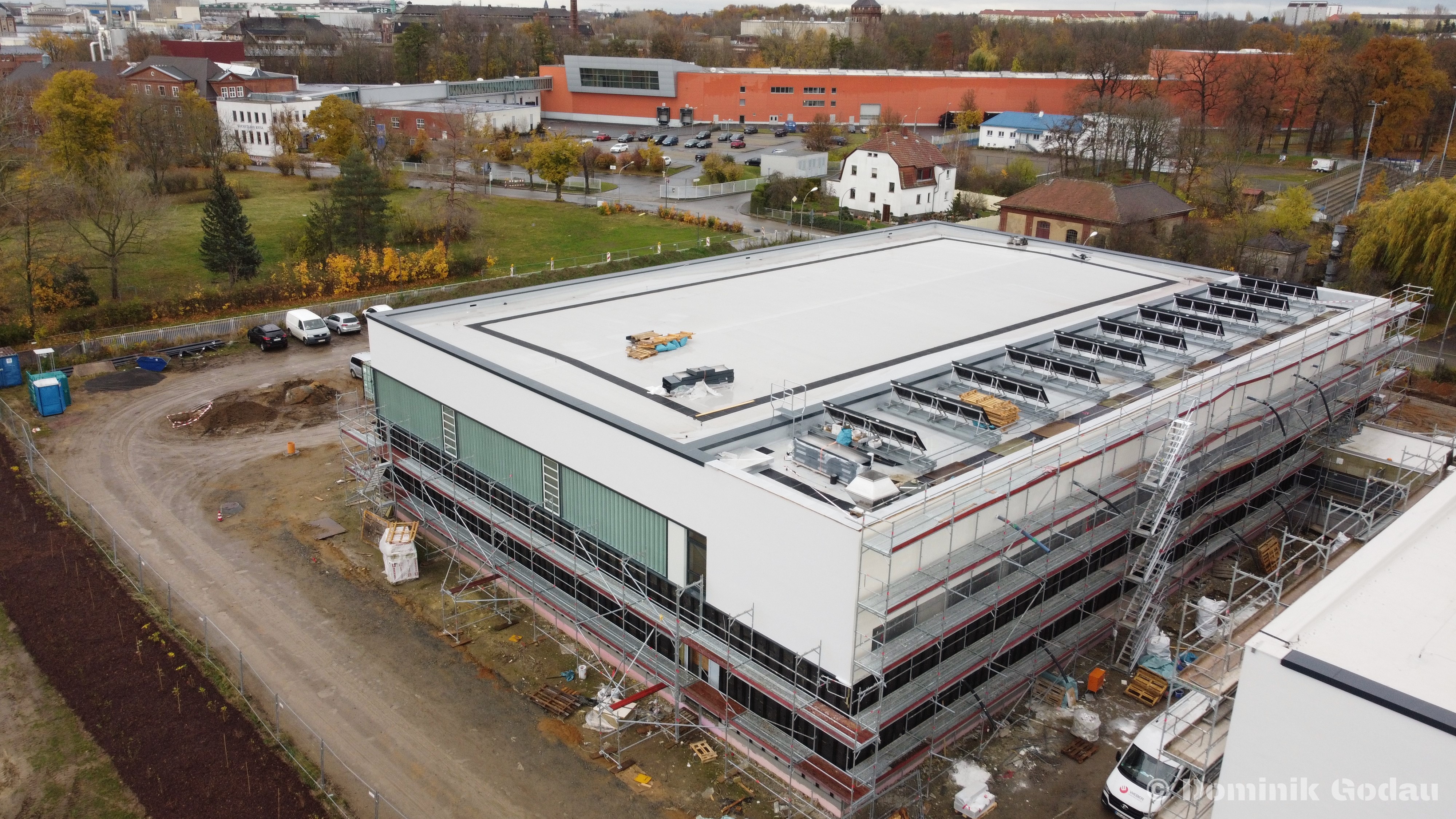 Heute haben wir für euch ein paar Bilder aus der Luft gemacht. Die neue Schule nimmt langsam Gestalt an. Auch die Außenanlagen sind langsam erkennbar. Außerdem wurde für die Öffentlichkeit ein kleiner Bürgerpark am Schulgelände errichtet.
