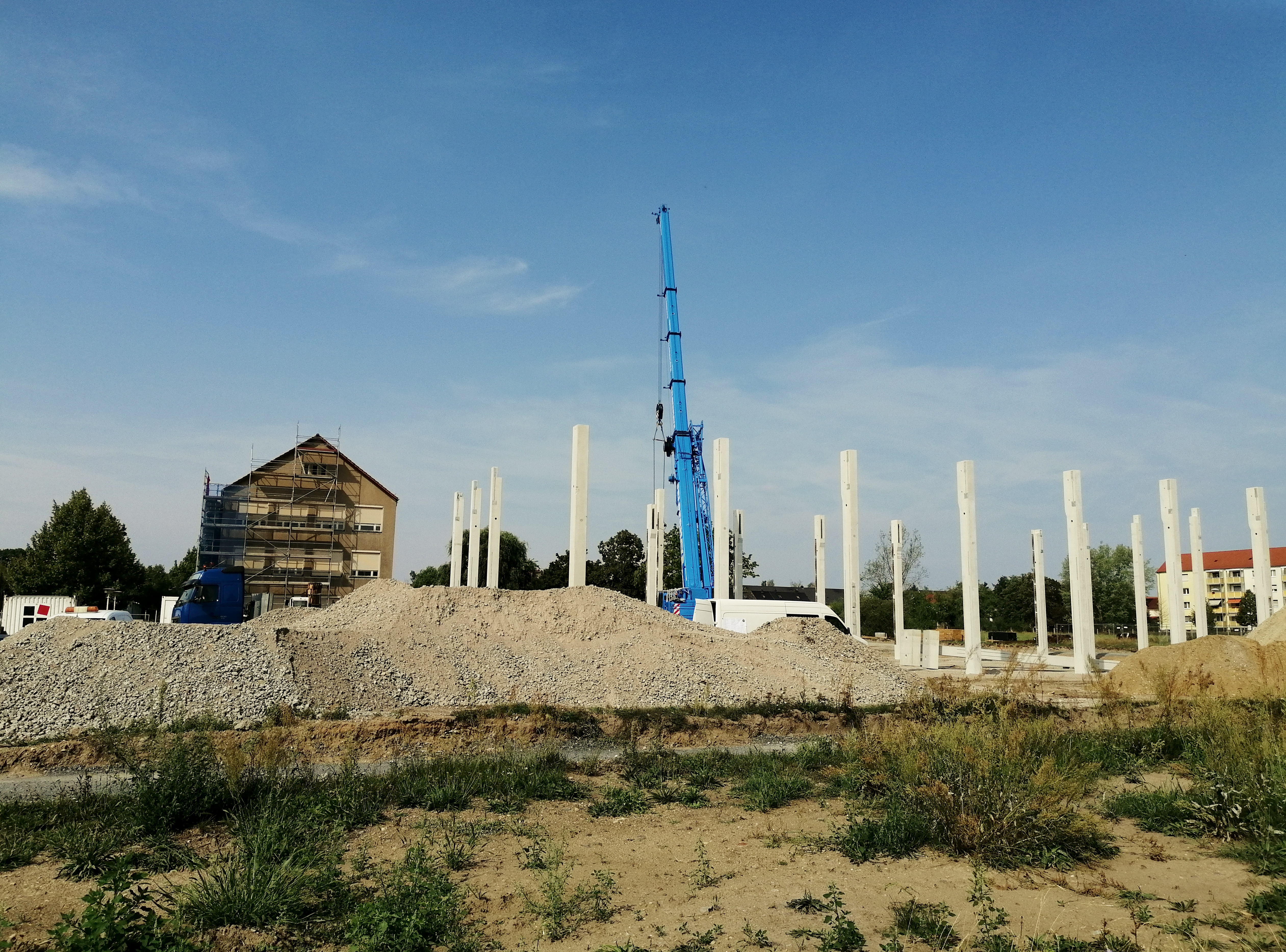 Einen Monat später war das alte Hortgebäude Geschichte und es wurde der erste Grundstein für die neue Zweifelderturnhalle gelegt.