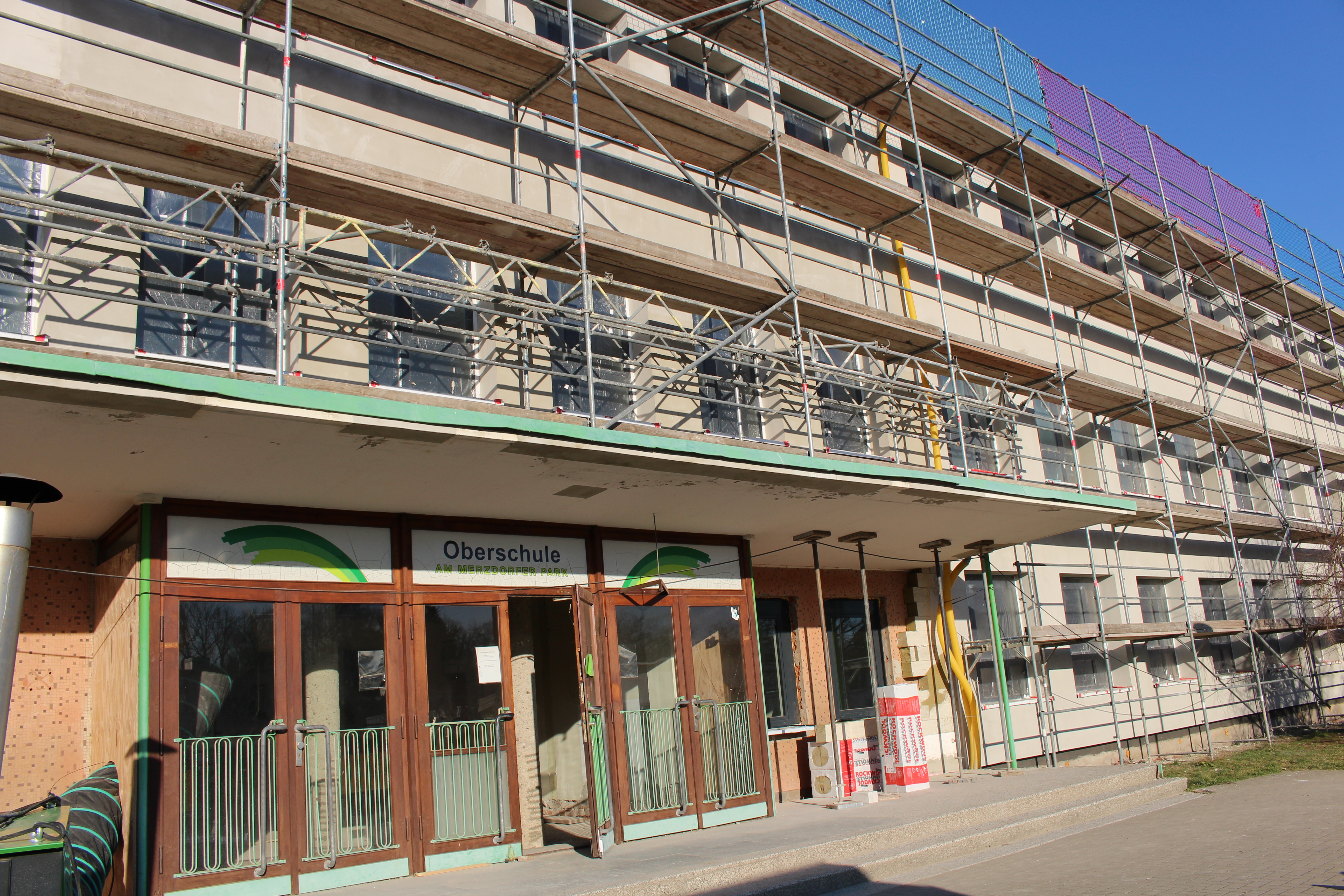 Im neuen Jahr ist nun auch schon die Hülle der neuen Turnhalle erkennbar. Auch im Schulhaus hat sich einiges getan...
